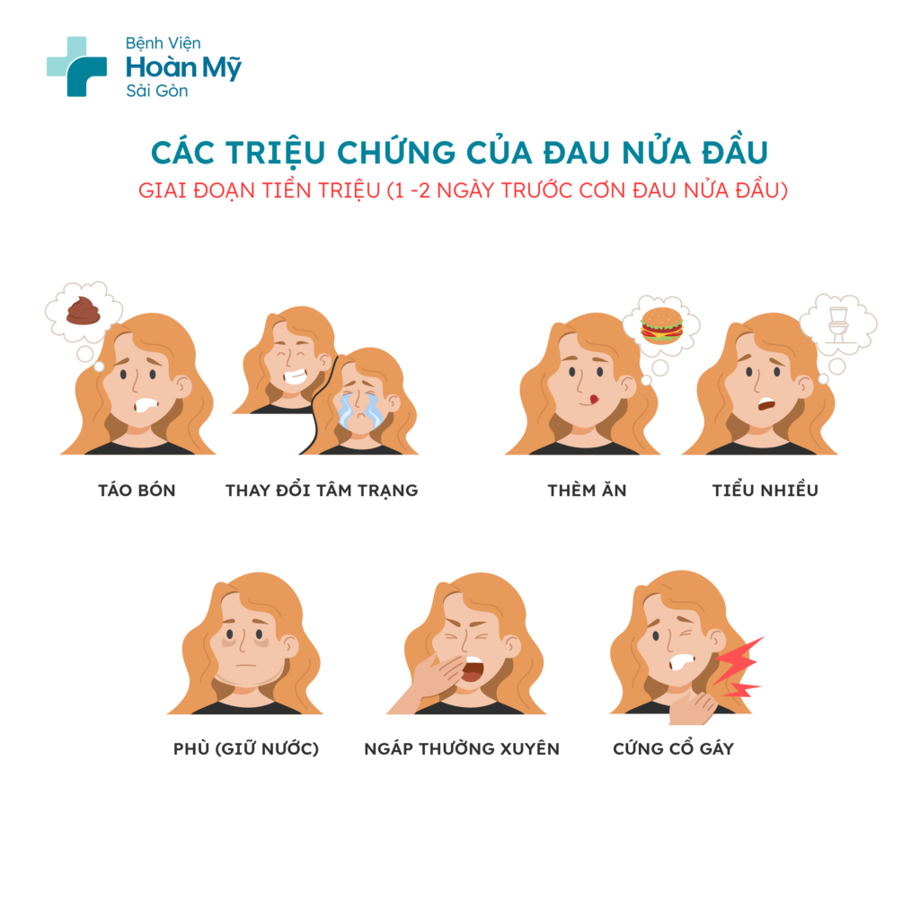 • Cơn đau nửa đầu kéo dài vài giờ hoặc vài ngày, thường xuyên lặp lại.
