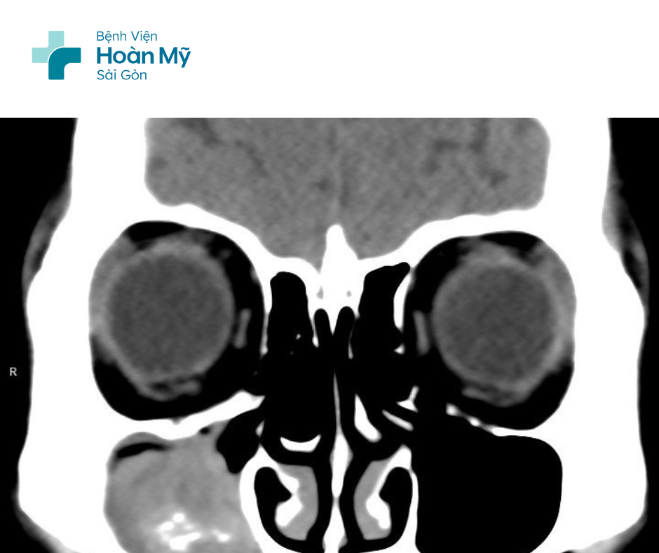 Sau khi khai thác bệnh sử và nội soi mũi cho người bệnh, bác sĩ chuyên khoa Tai Mũi Họng nhận định đây là một bệnh lý nặng và cho người bệnh chụp MSCT mũi xoang. Kết quả cho hình ảnh mờ toàn bộ cùng nhiều nốt cản quang bên trong xoang hàm và xoang sàng phải, sau hội chẩn, các bác sĩ chẩn đoán viêm xoang do nấm và người bệnh được lên lịch phẫu thuật nội soi chức năng mũi xoang vào ngày hôm sau.
