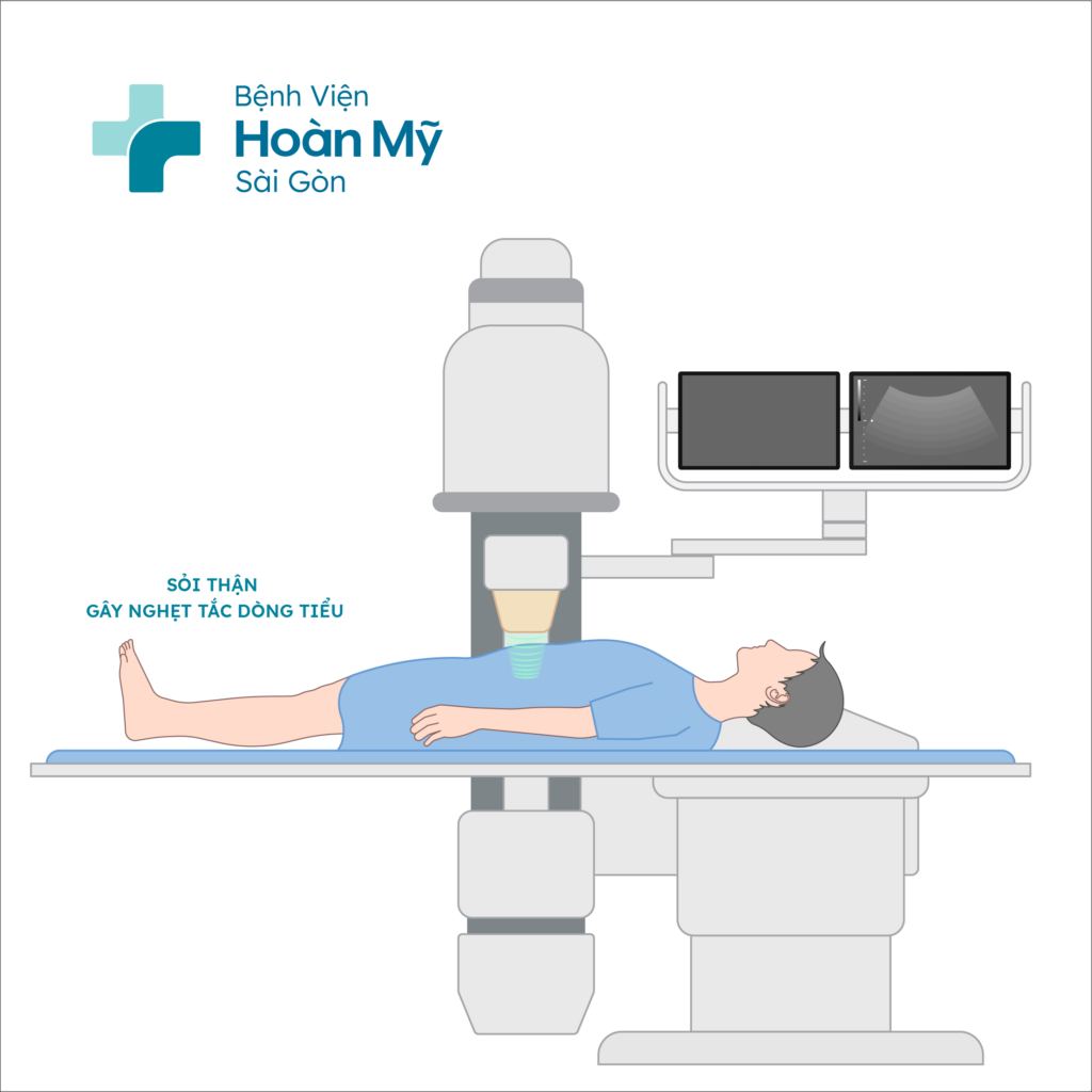 • Tán sỏi ngoài cơ thể: dùng sóng xung kích hội tụ áp lực cao từ ngoài cơ thể, dưới sự định vị từ bác sĩ chuyên khoa tập trung tiêu điểm vào viên sỏi để phá vỡ cấu trúc, làm viên sỏi vỡ vụn và thoát ra dần dần theo dòng nước tiểu mỗi ngày.