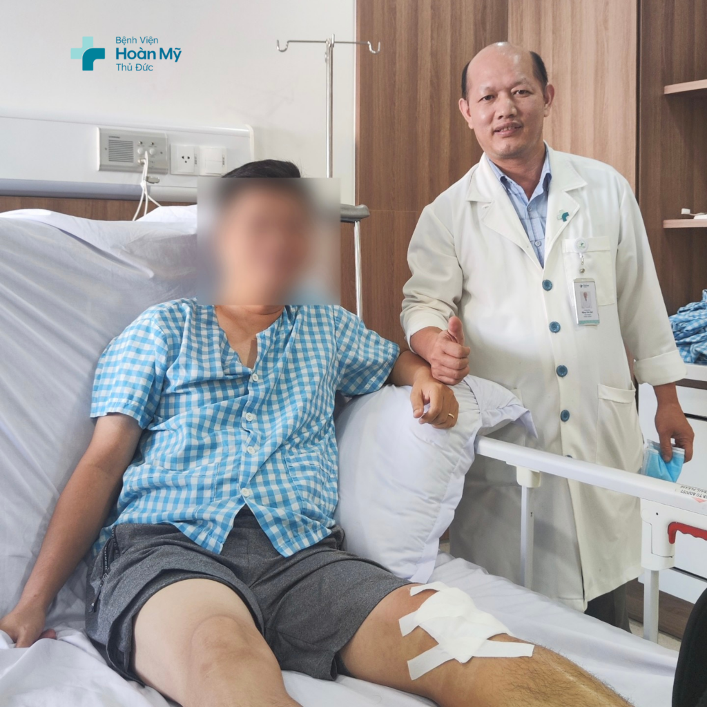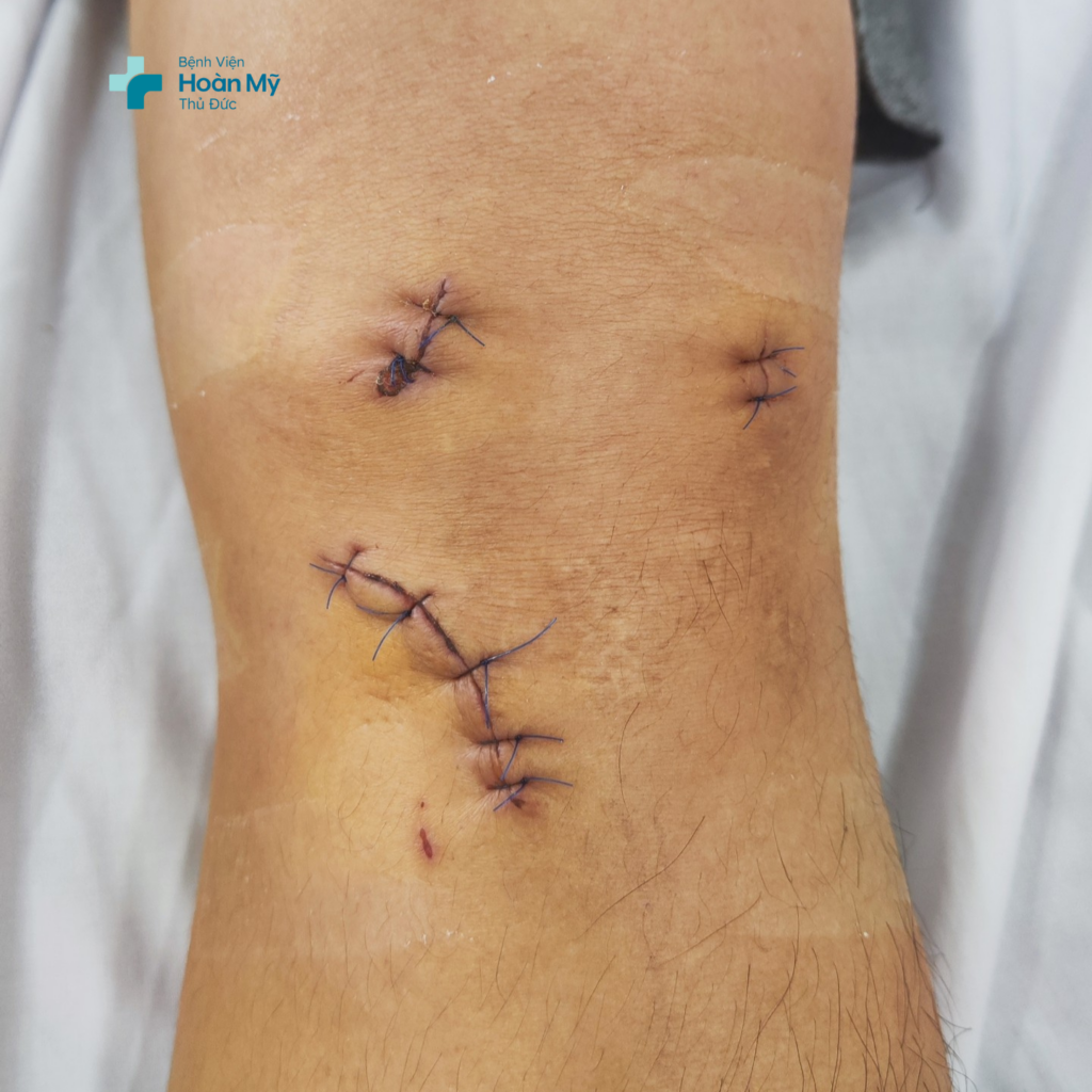 Sau 60 phút phẫu thuật nội soi khớp gối, các bác sĩ tại Bệnh viện đa khoa Quốc Tế Hoàn Mỹ Thủ Đức đã tái tạo thành công dây chằng chéo trước gối trái cho người bệnh 35 tuổi.