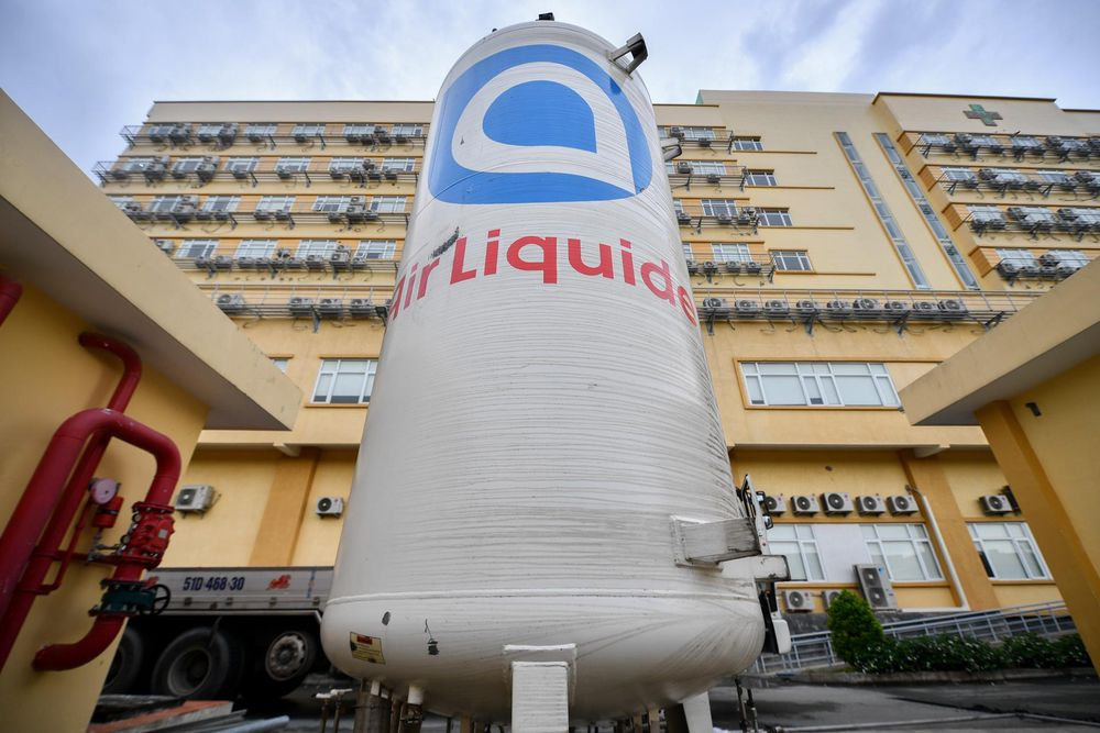 In preparation to receive Covid-19 patients, the hospital installed a 6000 m3 liquid oxygen tank to ensure sufficient oxygen supplies for those in need. Hoan My Thu Duc International General Hospital, Ho Chi Minh City, 28 July 2021.