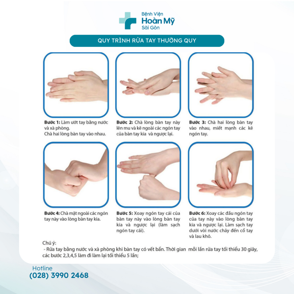 Tại Bệnh viện Hoàn Mỹ Sài Gòn, vệ sinh tay luôn được xem là một trong những ưu tiên hàng đầu trong công tác kiểm soát nhiễm khuẩn và đảm bảo an toàn cho người bệnh. Hàng năm, bệnh viện đều tích cực hưởng ứng chiến dịch Ngày Vệ sinh Tay Thế giới do Tổ chức Y tế Thế giới phát động với nhiều hoạt động ý nghĩa: tổ chức truyền thông nội bộ, huấn luyện kỹ năng vệ sinh tay đúng chuẩn WHO cho nhân viên y tế, và phát động thi đua thực hành vệ sinh tay đúng thời điểm, đúng kỹ thuật tại tất cả các khoa phòng.