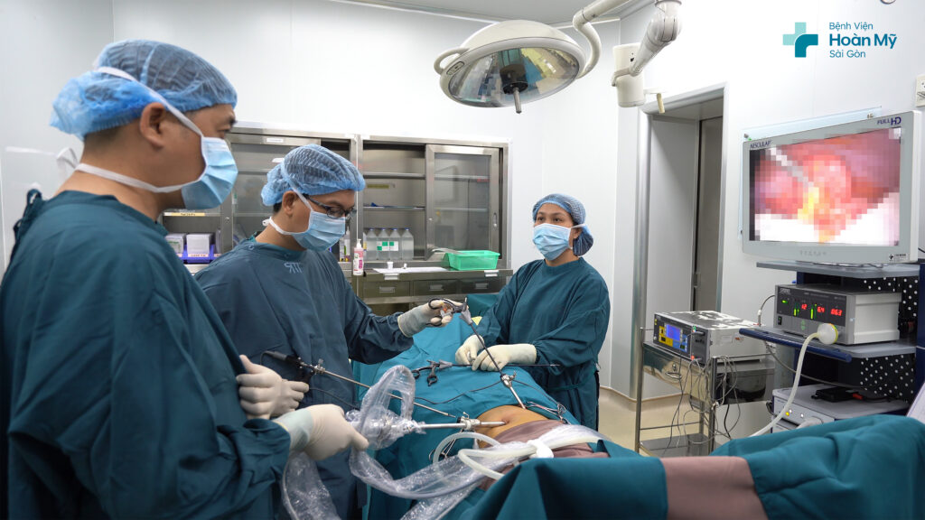 Hội chẩn cấp cứu với bác sĩ Tiêu hóa và các bác sĩ gây mê, cân nhắc và tiên lượng các biến chứng phát sinh do độ tuổi và bệnh nền, các bác sĩ quyết định phẫu thuật nội soi phá bỏ khối áp xe, hút mủ, gắp bỏ dị vật xương cá. Sau 90 phút, các bác sĩ đã tiếp cận và bộc lộ được ổ áp xe, thành công gắp ra xương cá, ổ bụng được rửa sạch, đặt dẫn lưu ổ áp xe ra trocar vùng bụng trái.