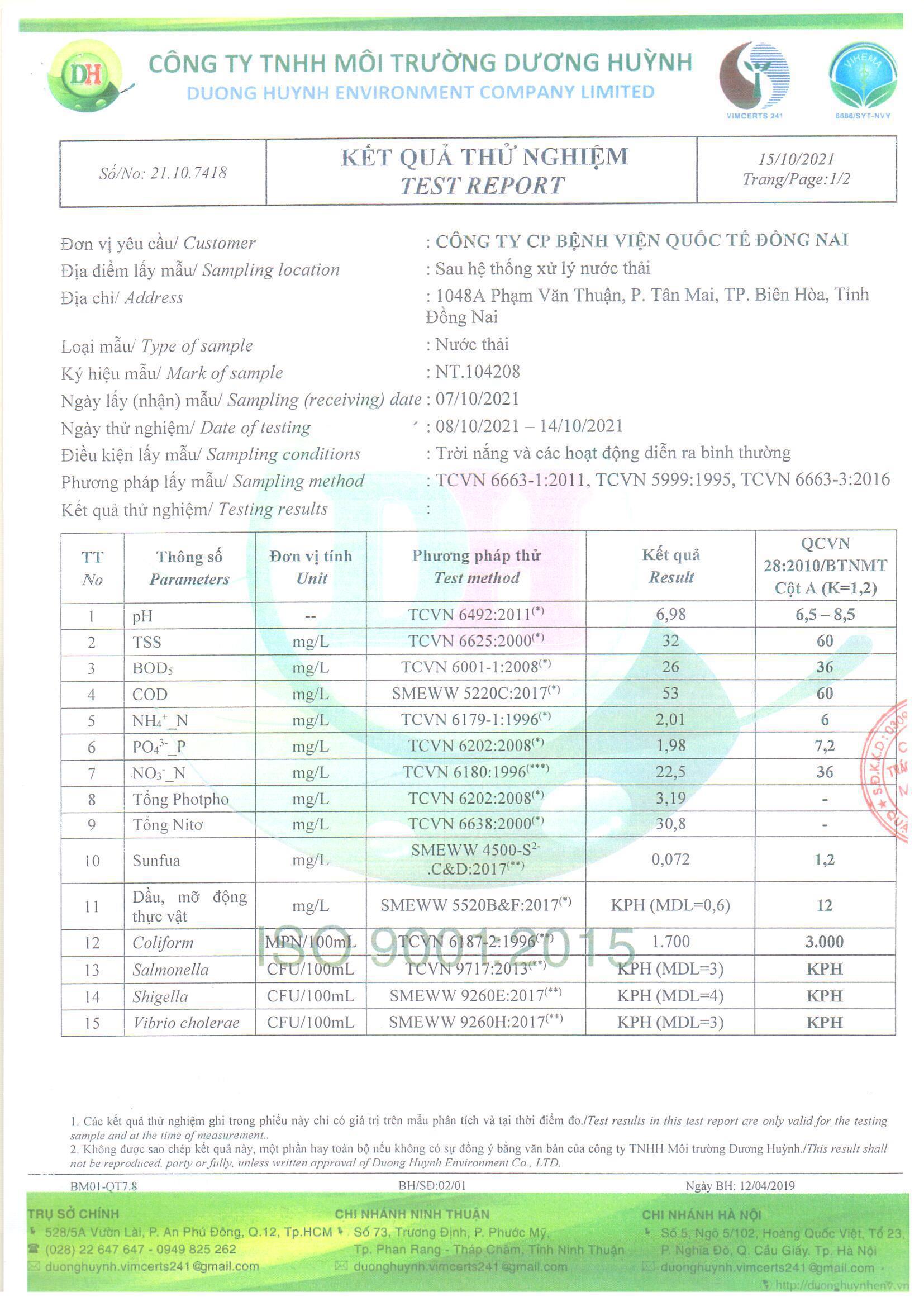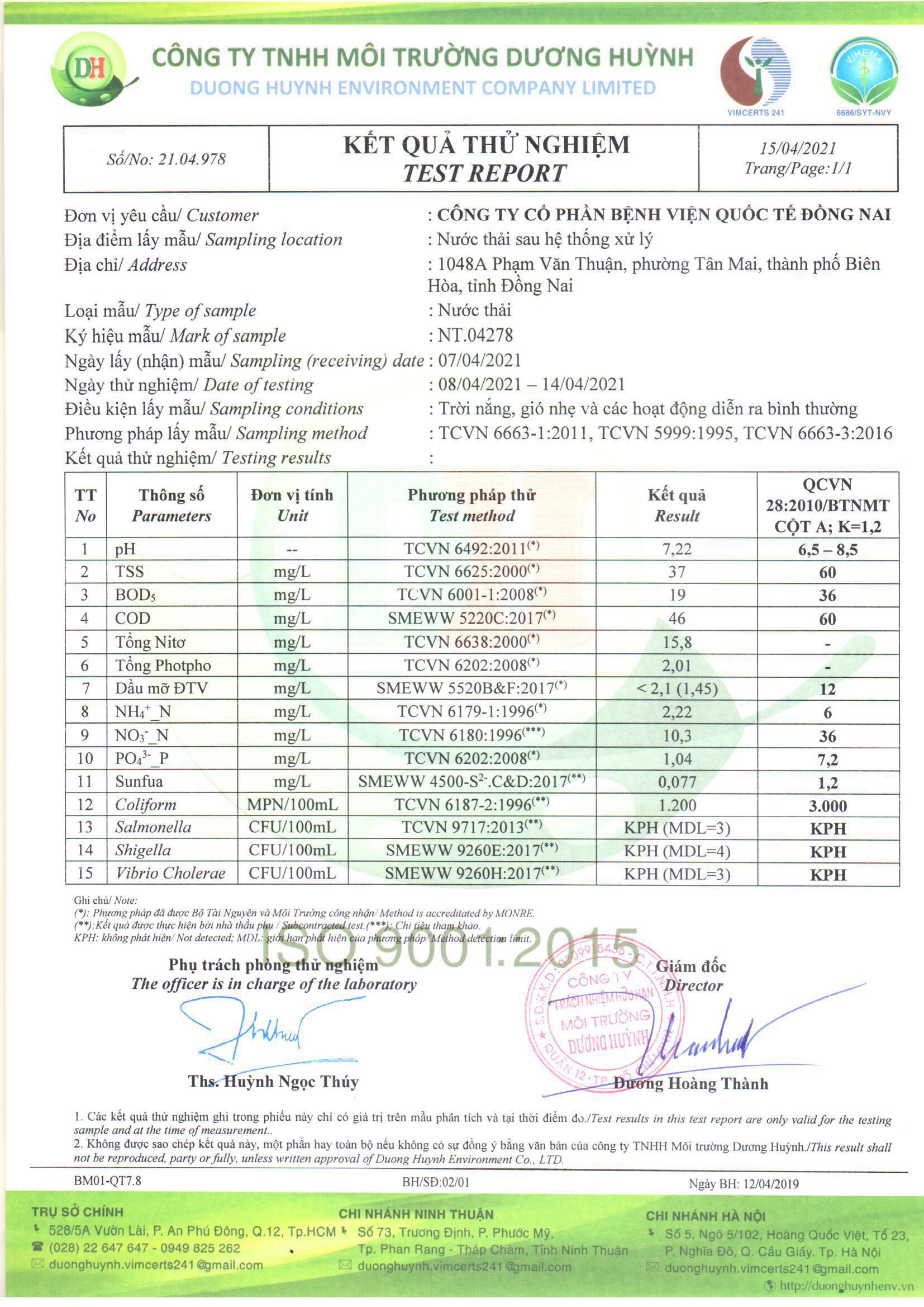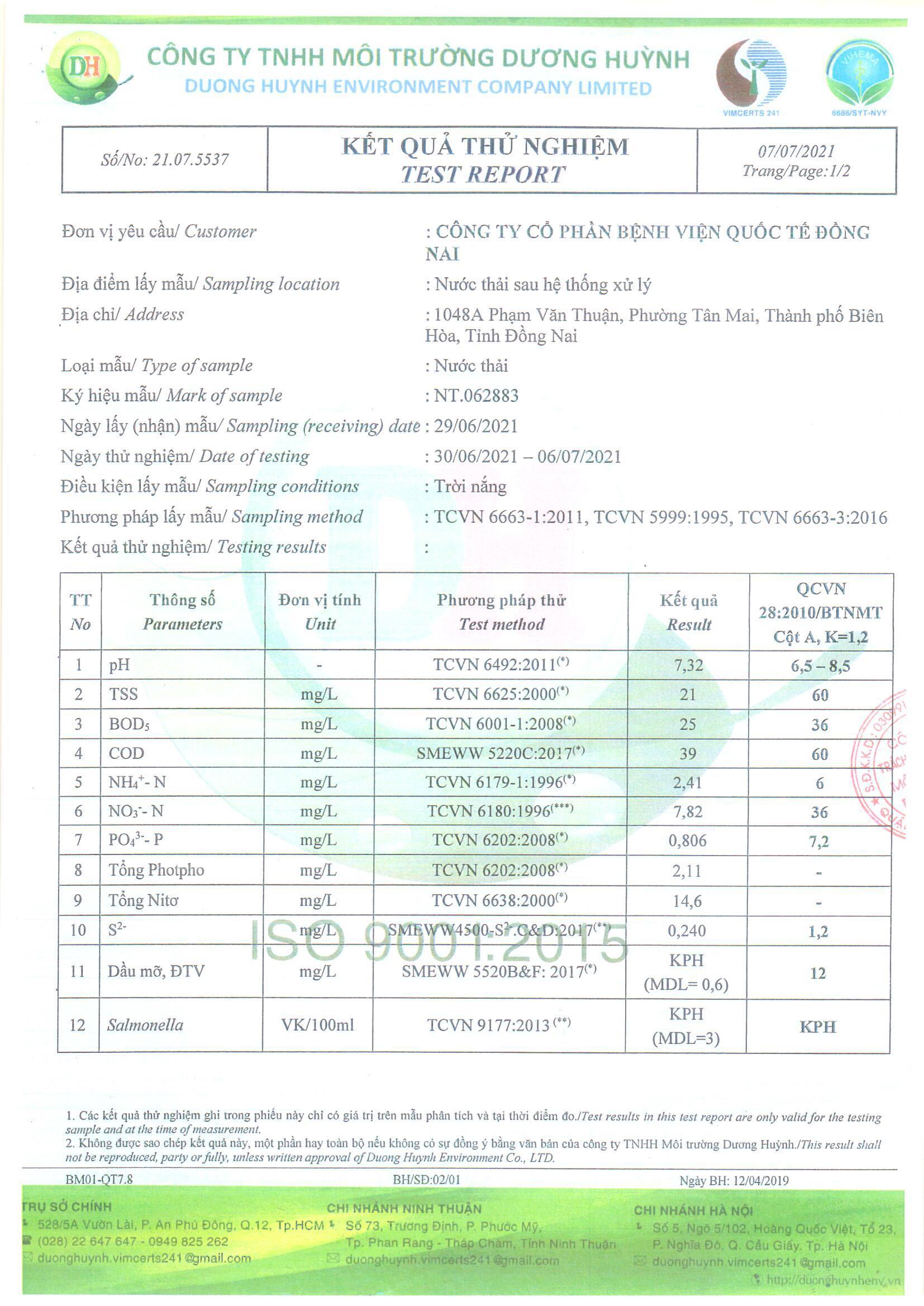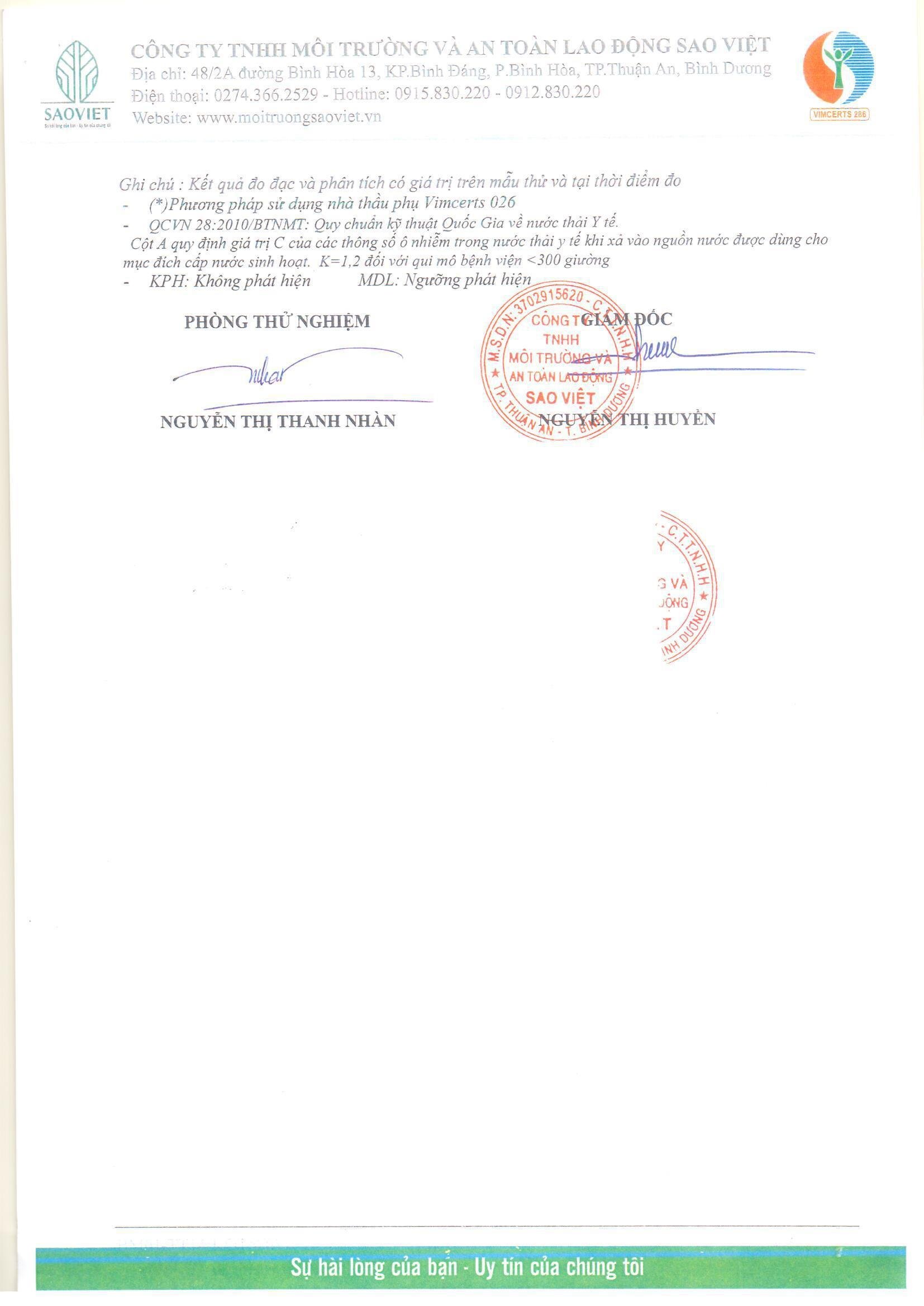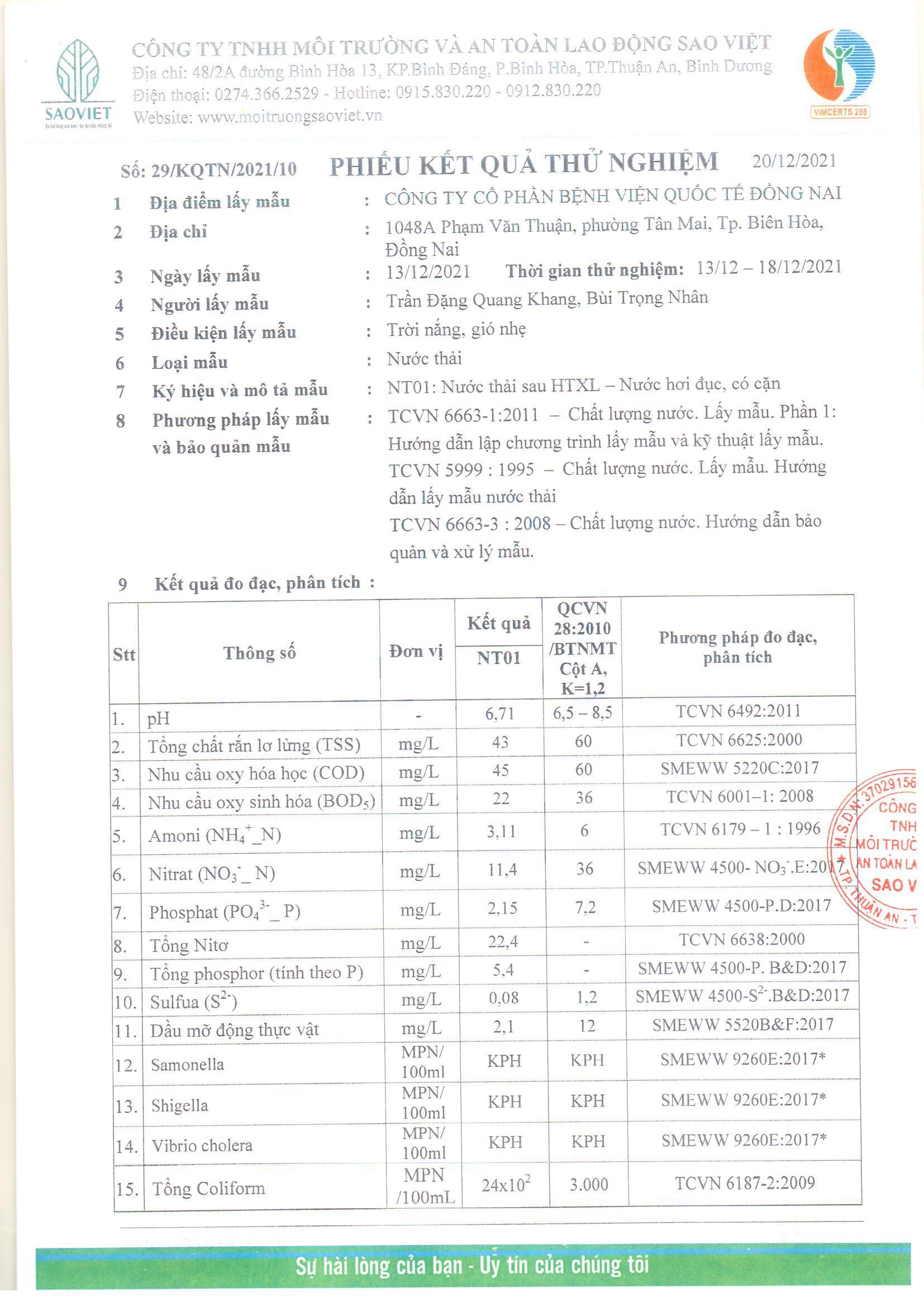 Kết quả quan trắc học 2021 Bệnh viện Hoàn Mỹ Đồng Nai