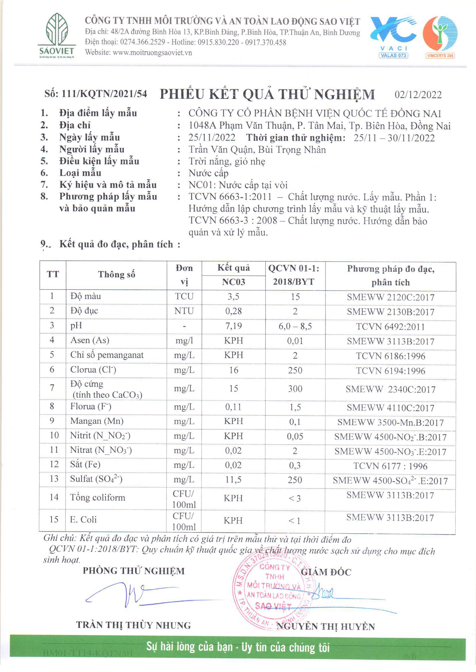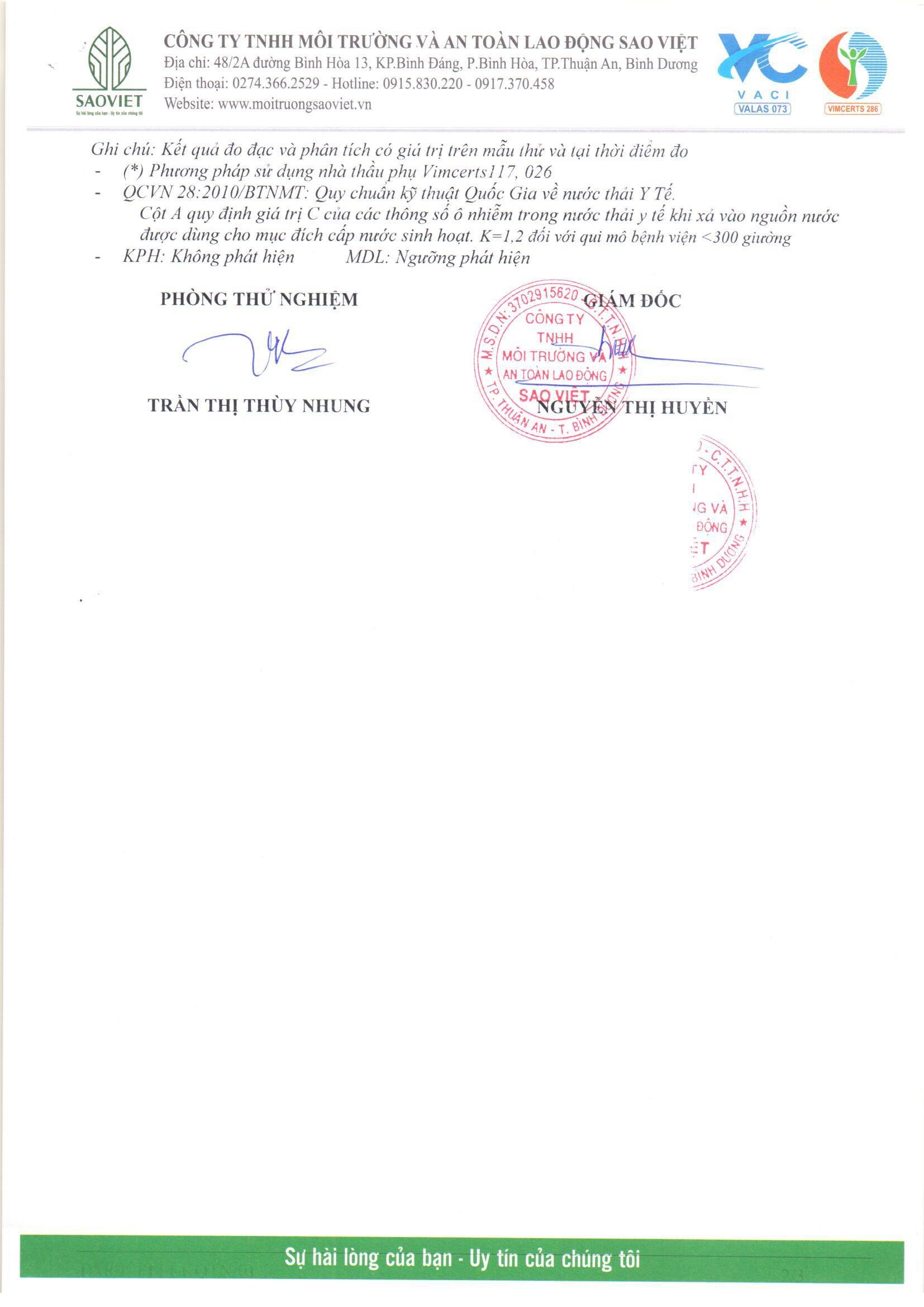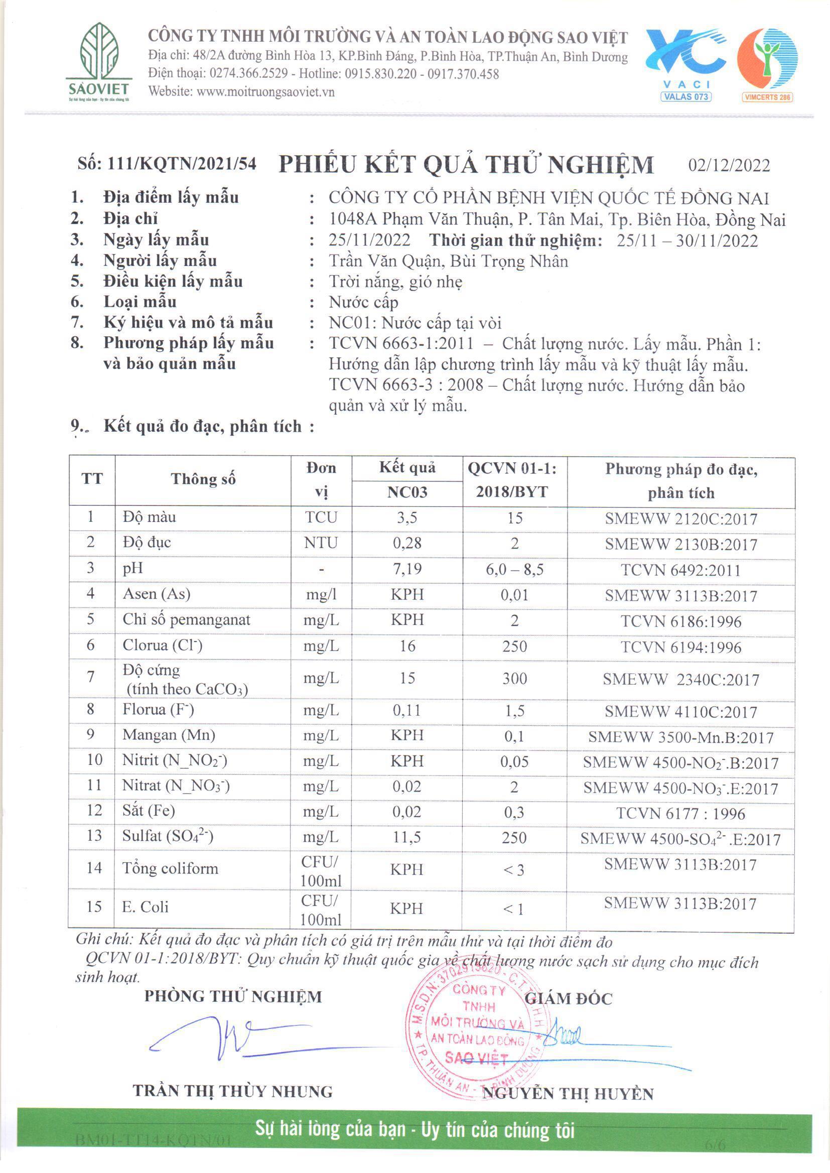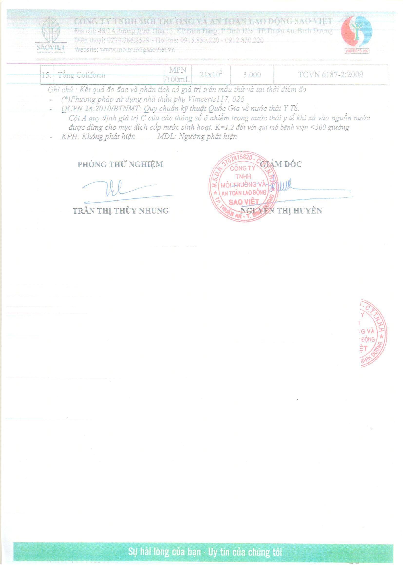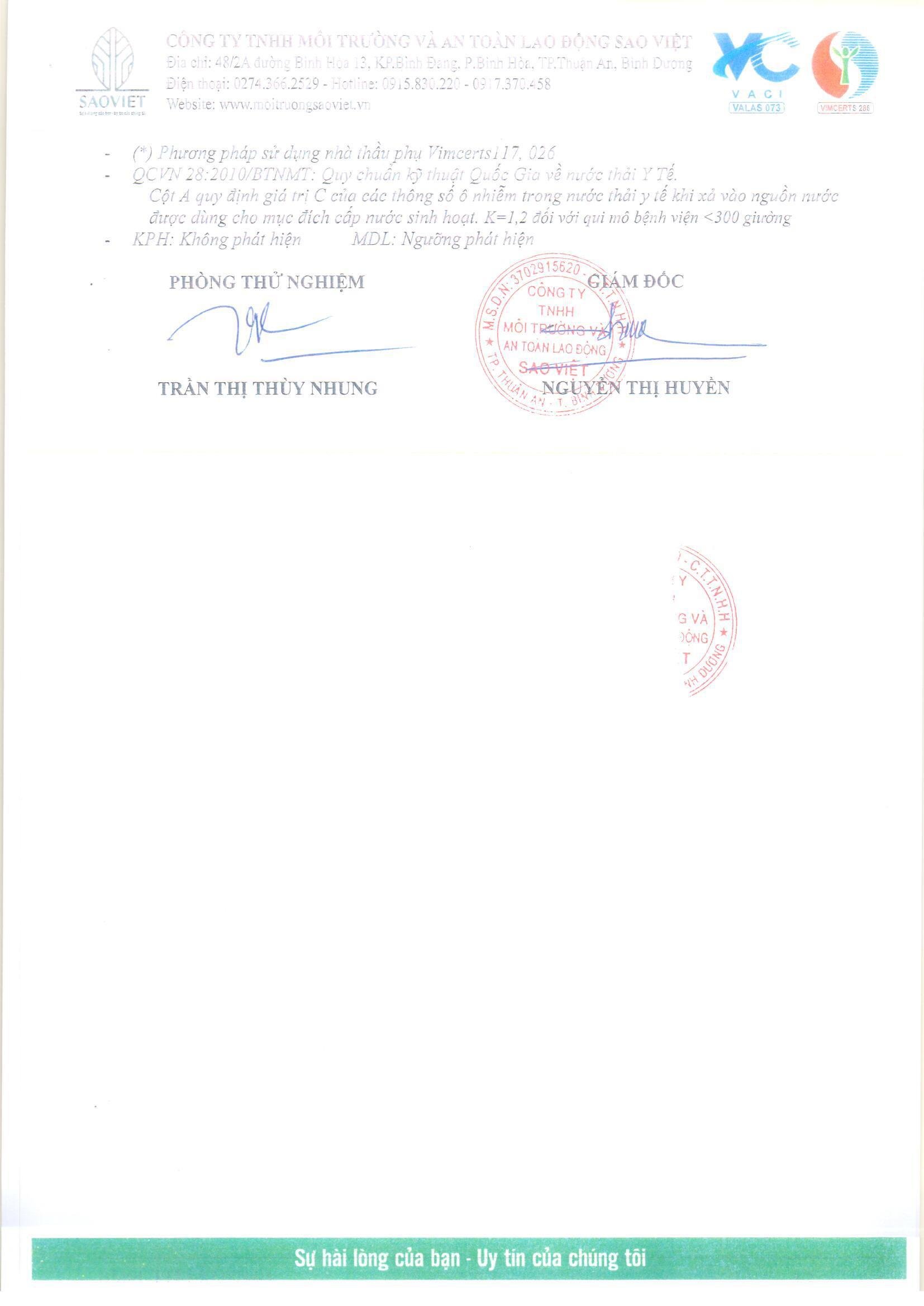 Kết quả quan trắc học 2022 Bệnh viện Hoàn Mỹ Đồng Nai