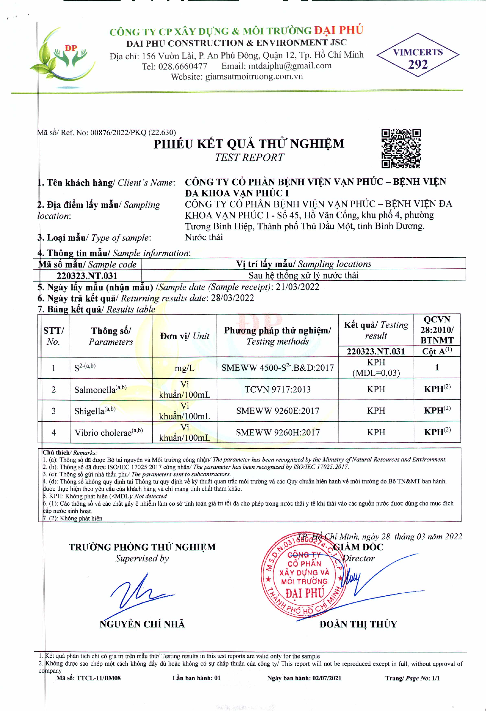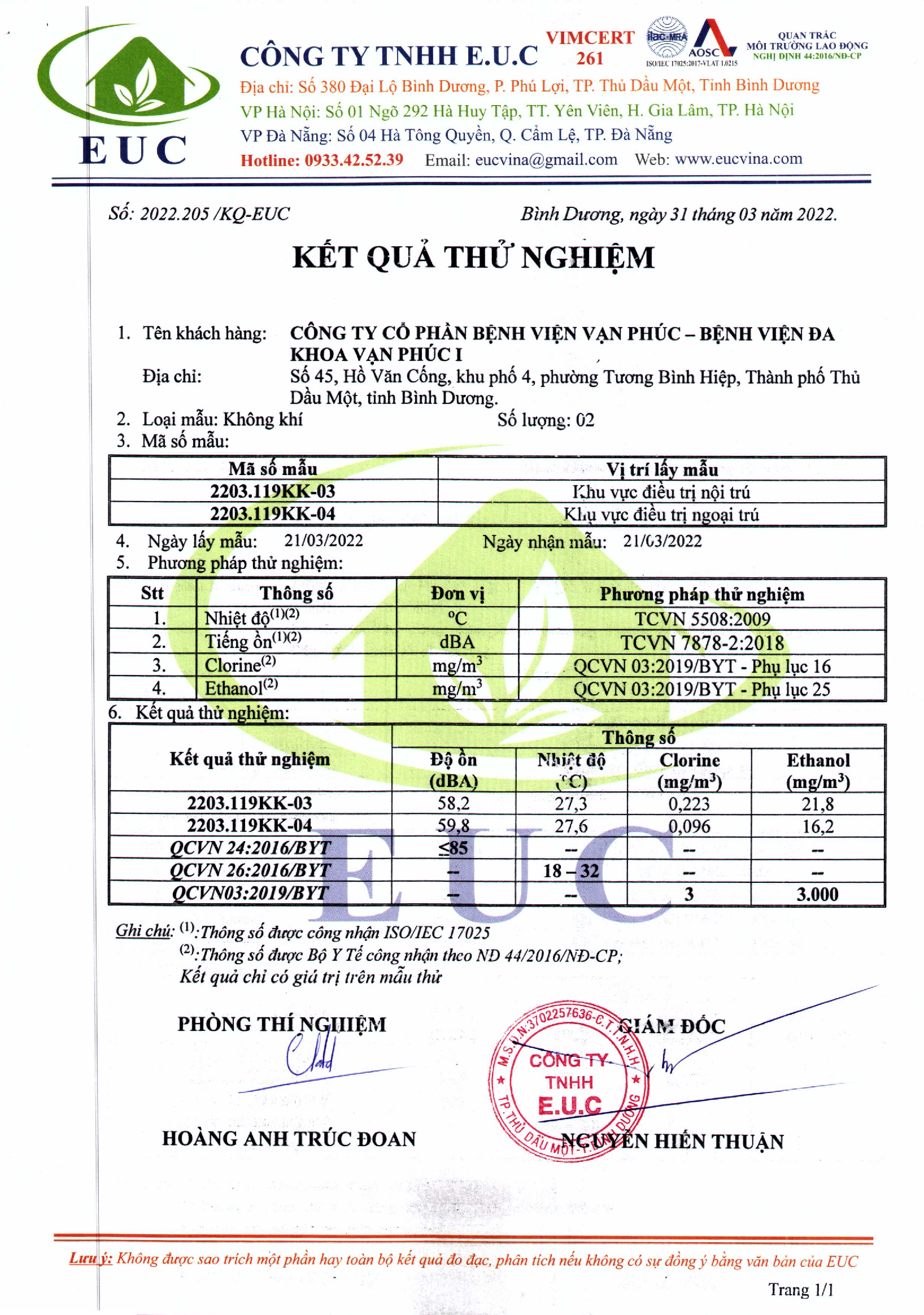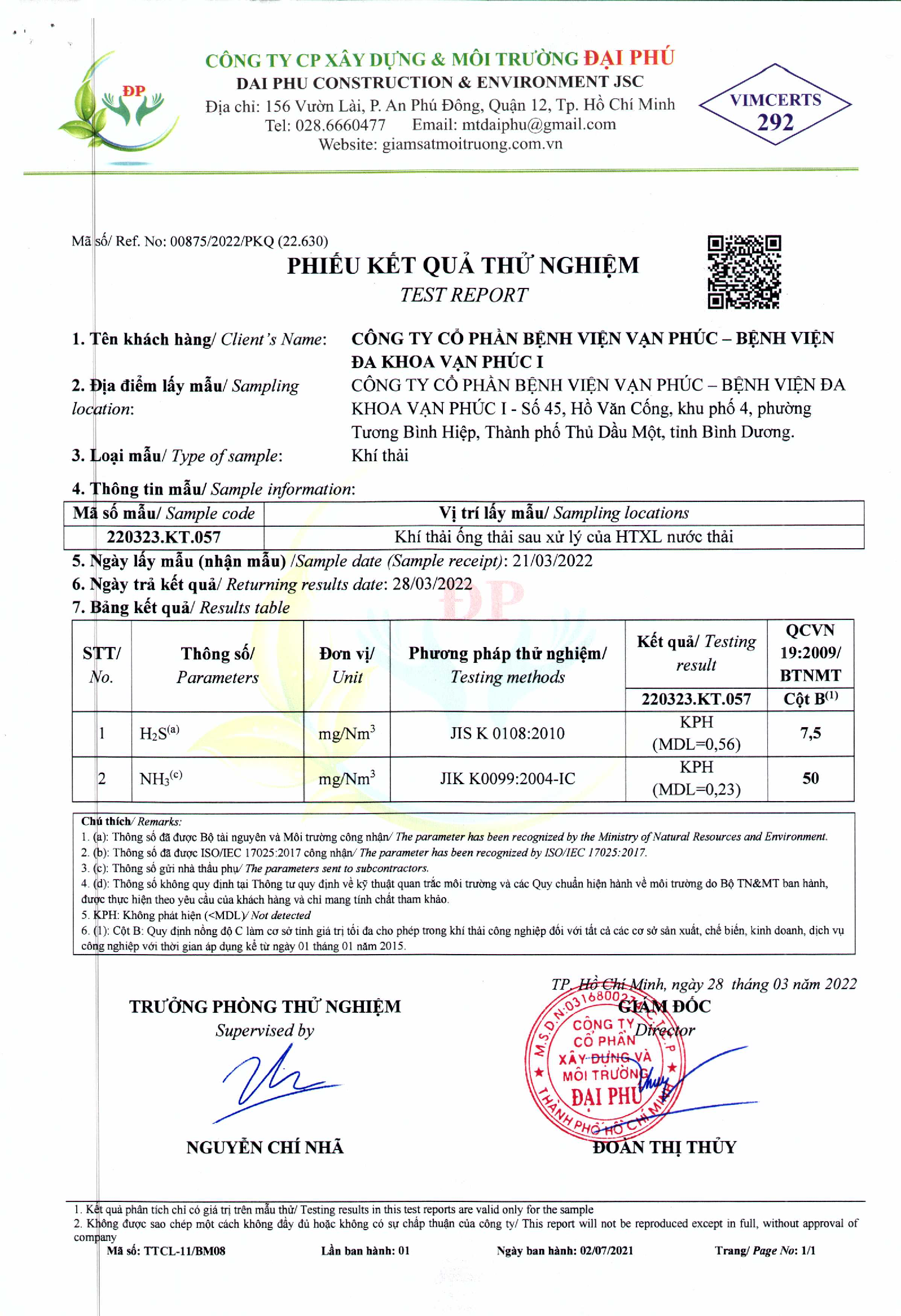 Kết quả quan trắc học quý I – 2022 Bệnh viện Hoàn Mỹ Bình Dương