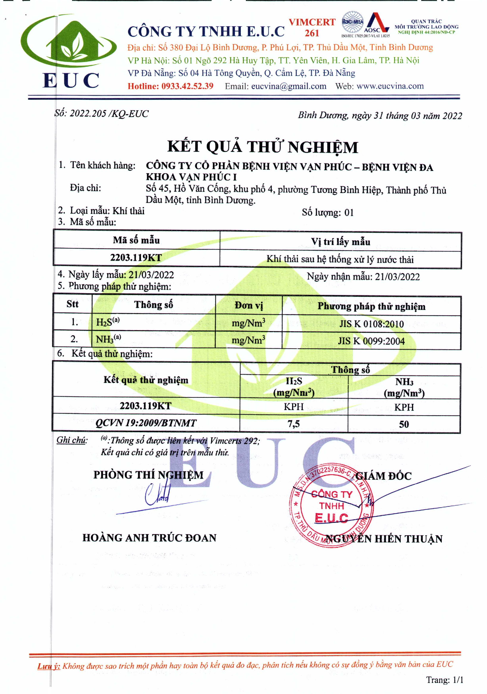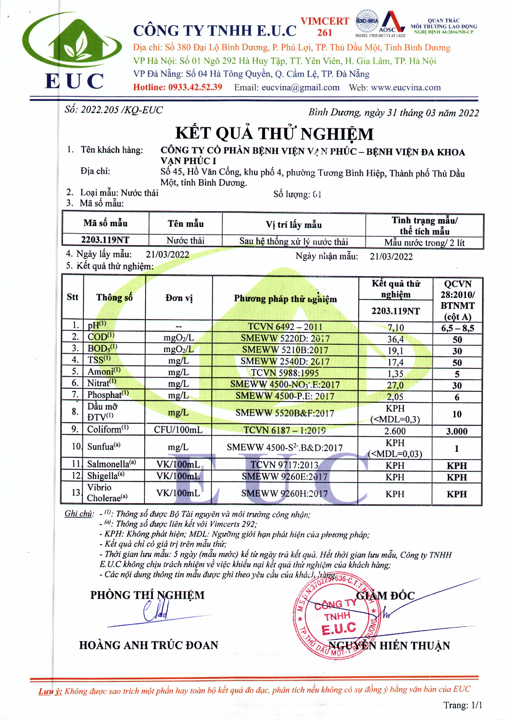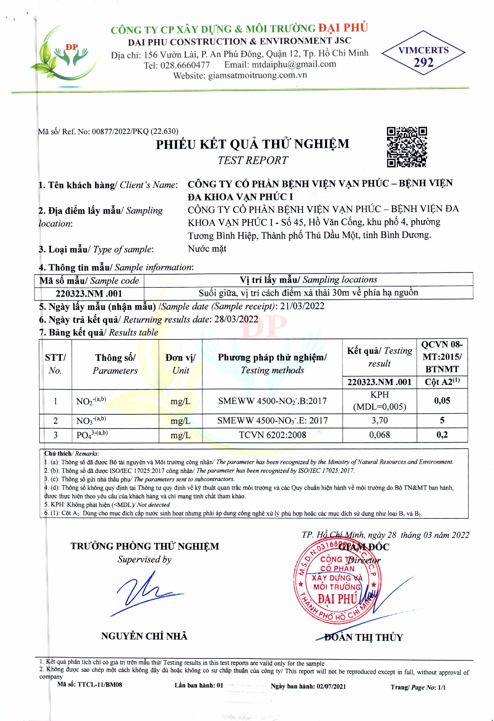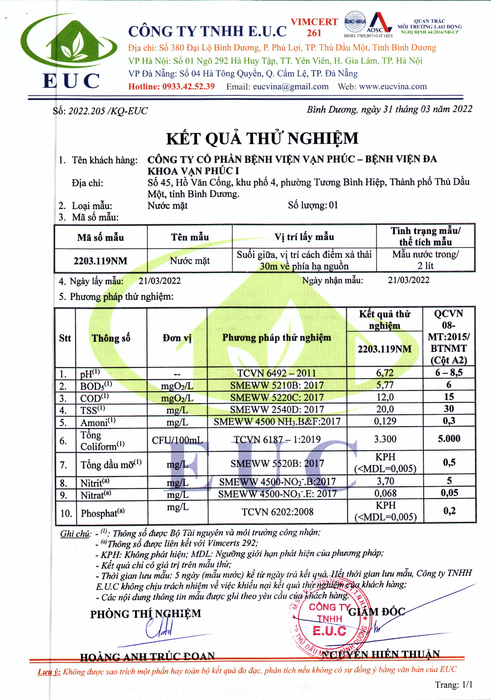 Kết quả quan trắc học quý I – 2022 Bệnh viện Hoàn Mỹ Bình Dương