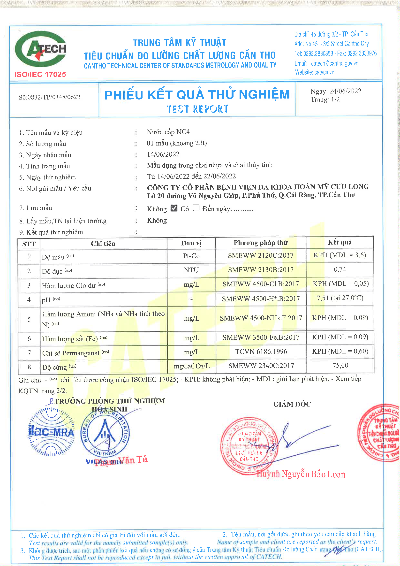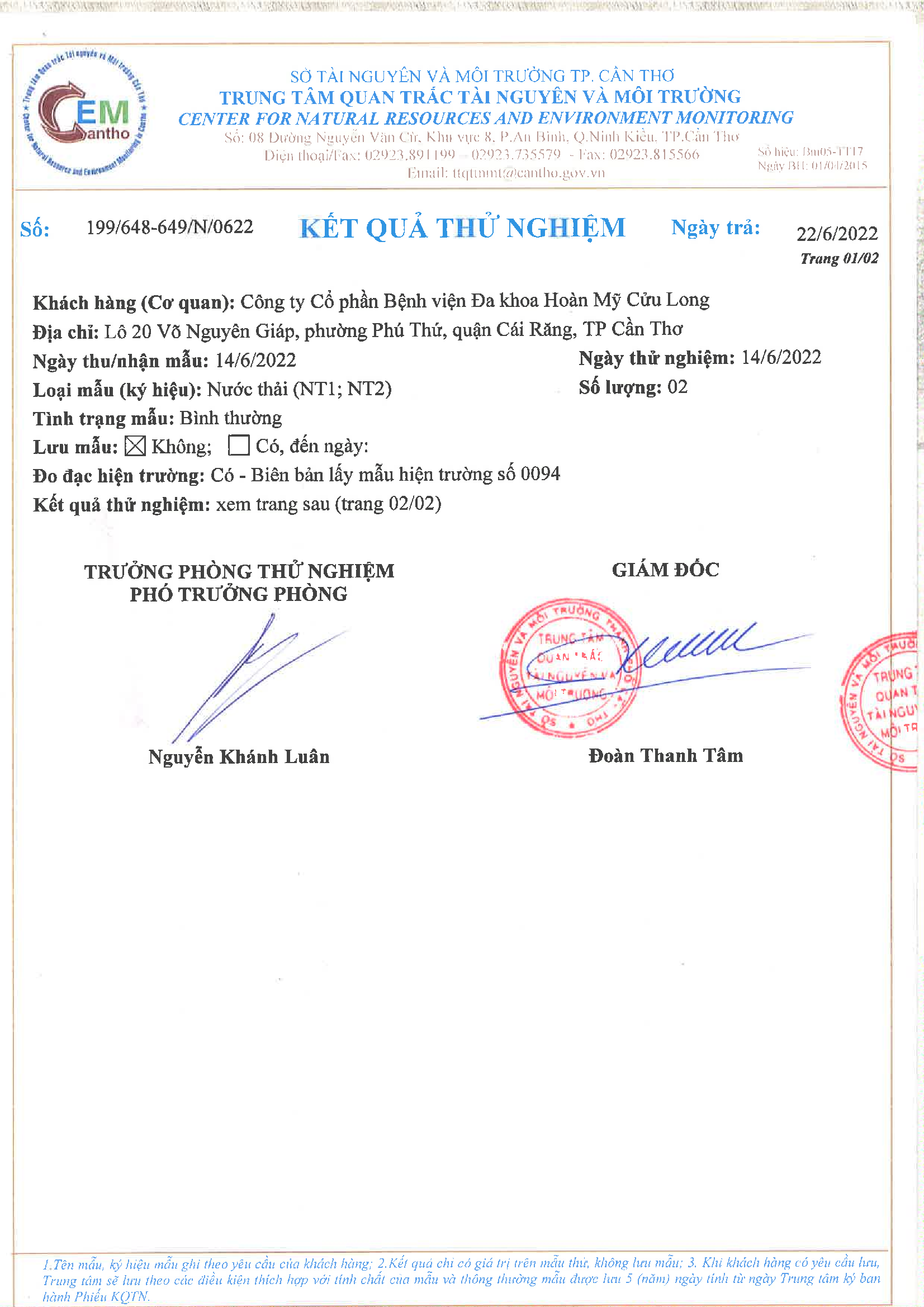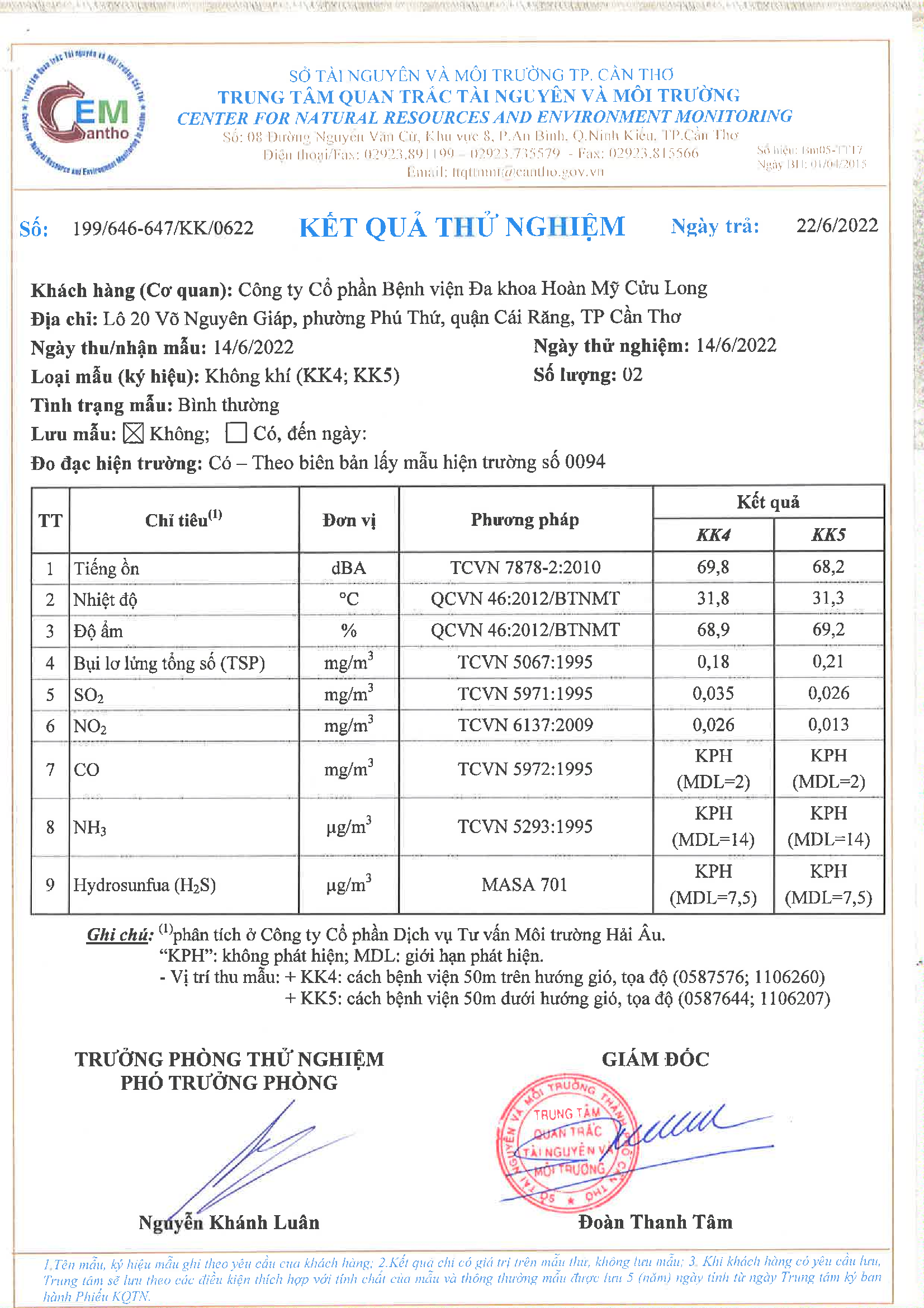 Kết quả quan trắc học quý II – 2022 Bệnh viện Hoàn Mỹ Cửu Long