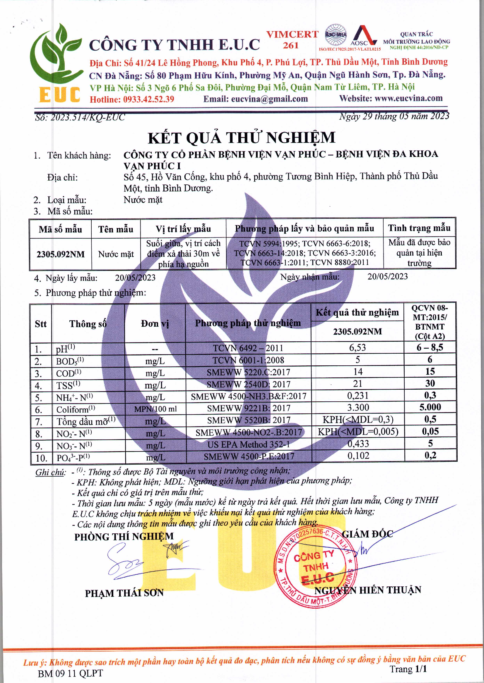 Kết quả quan trắc học quý II – 2023 Bệnh viện Hoàn Mỹ Bình Dương