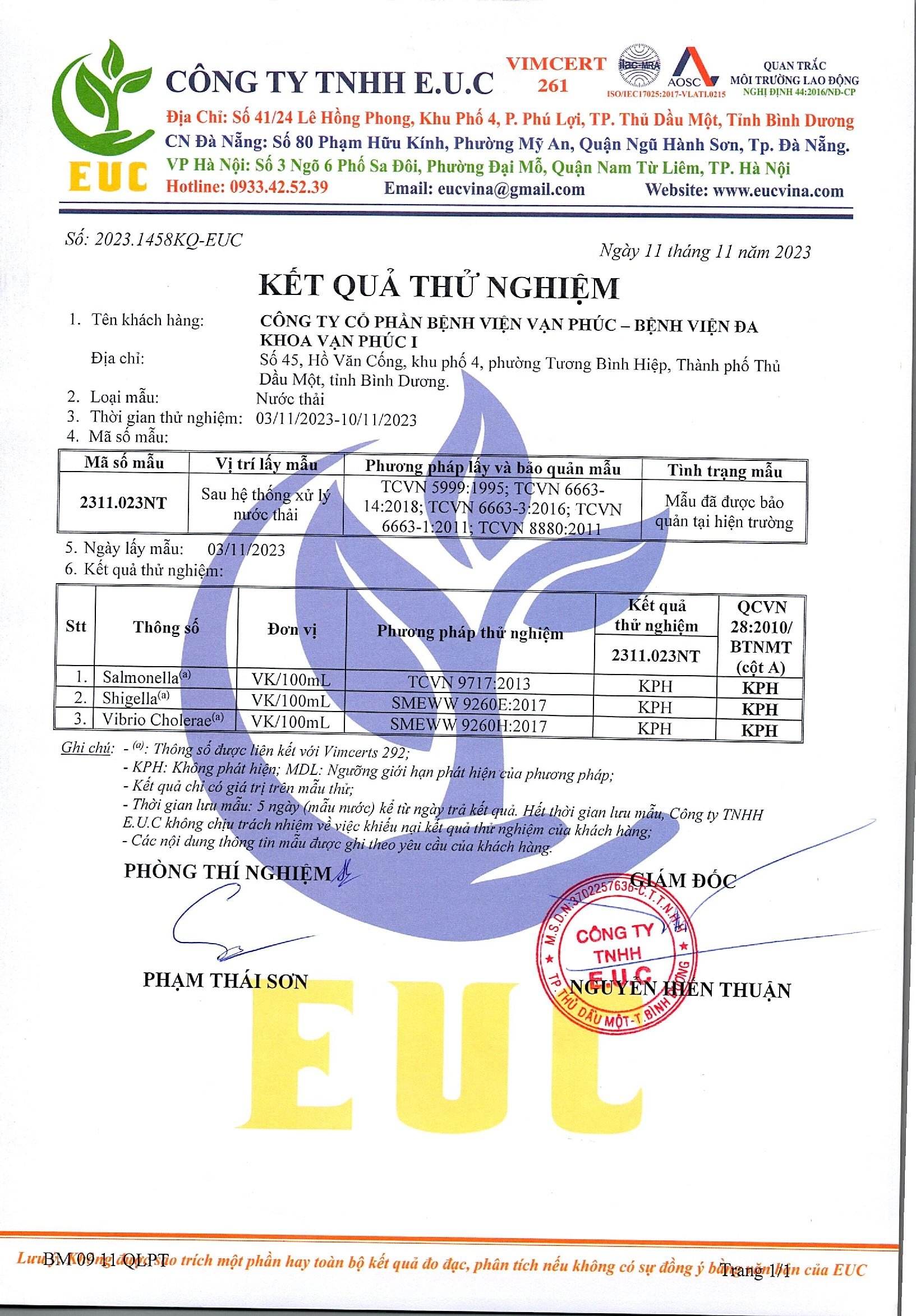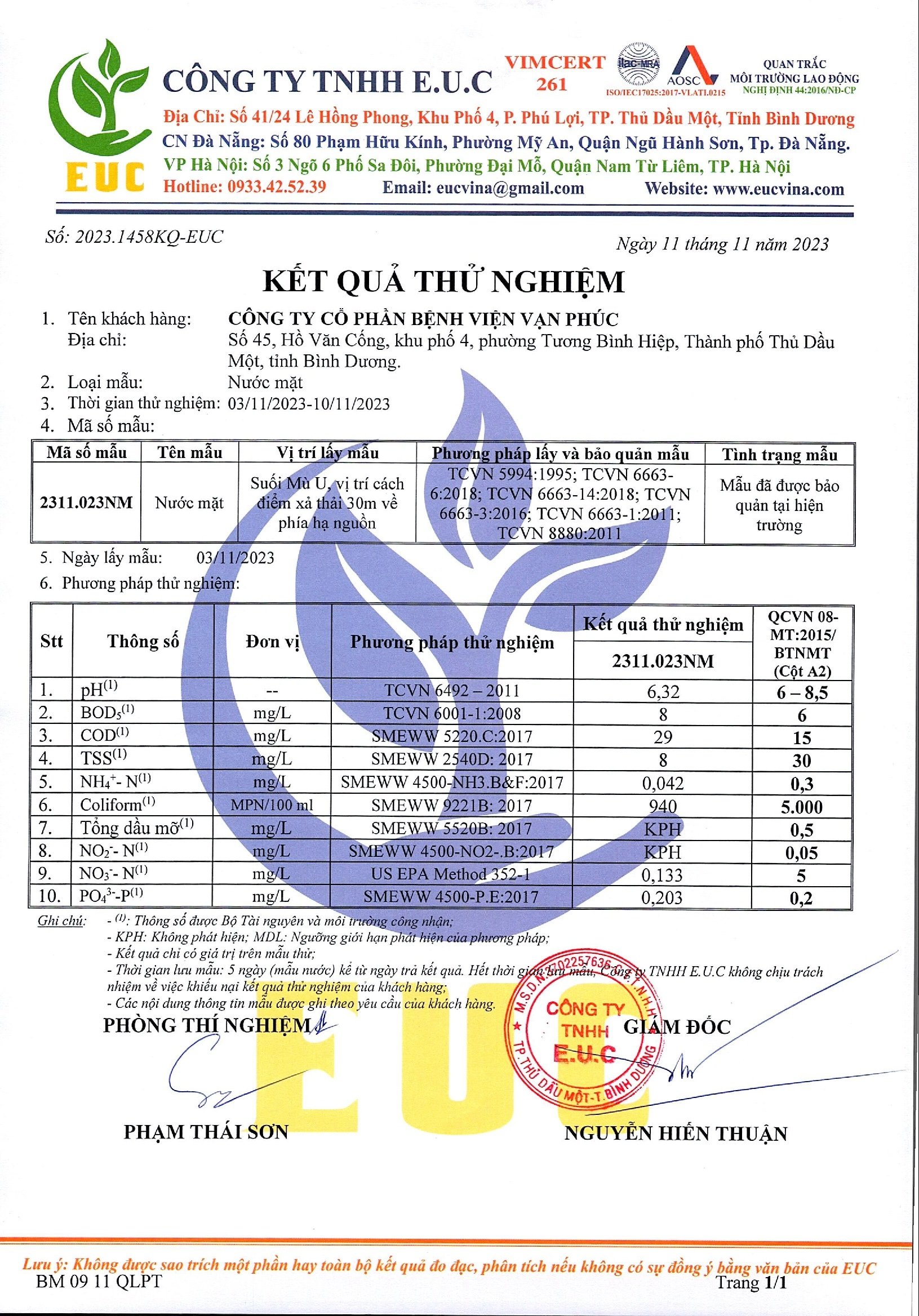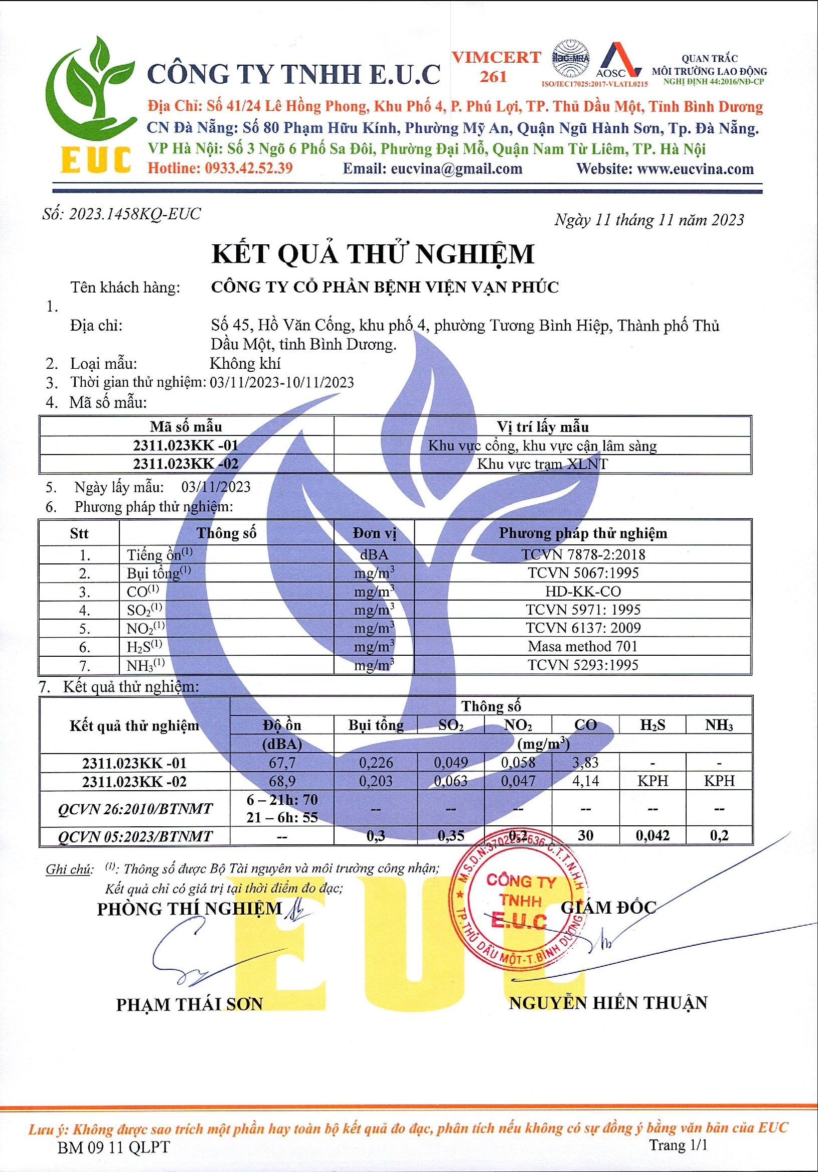 Kết quả quan trắc học quý IV – 2023 Bệnh viện Hoàn Mỹ Bình Dương