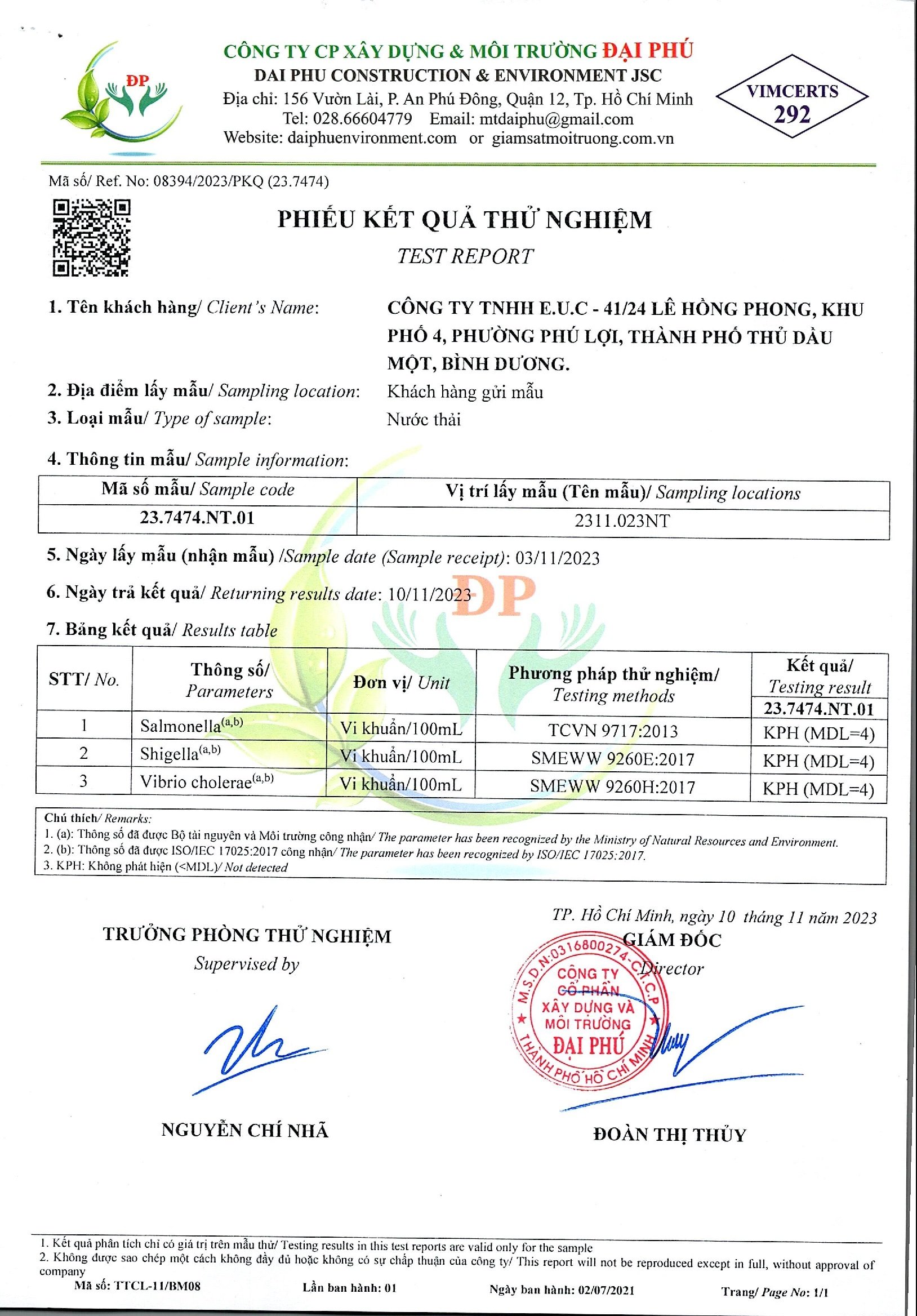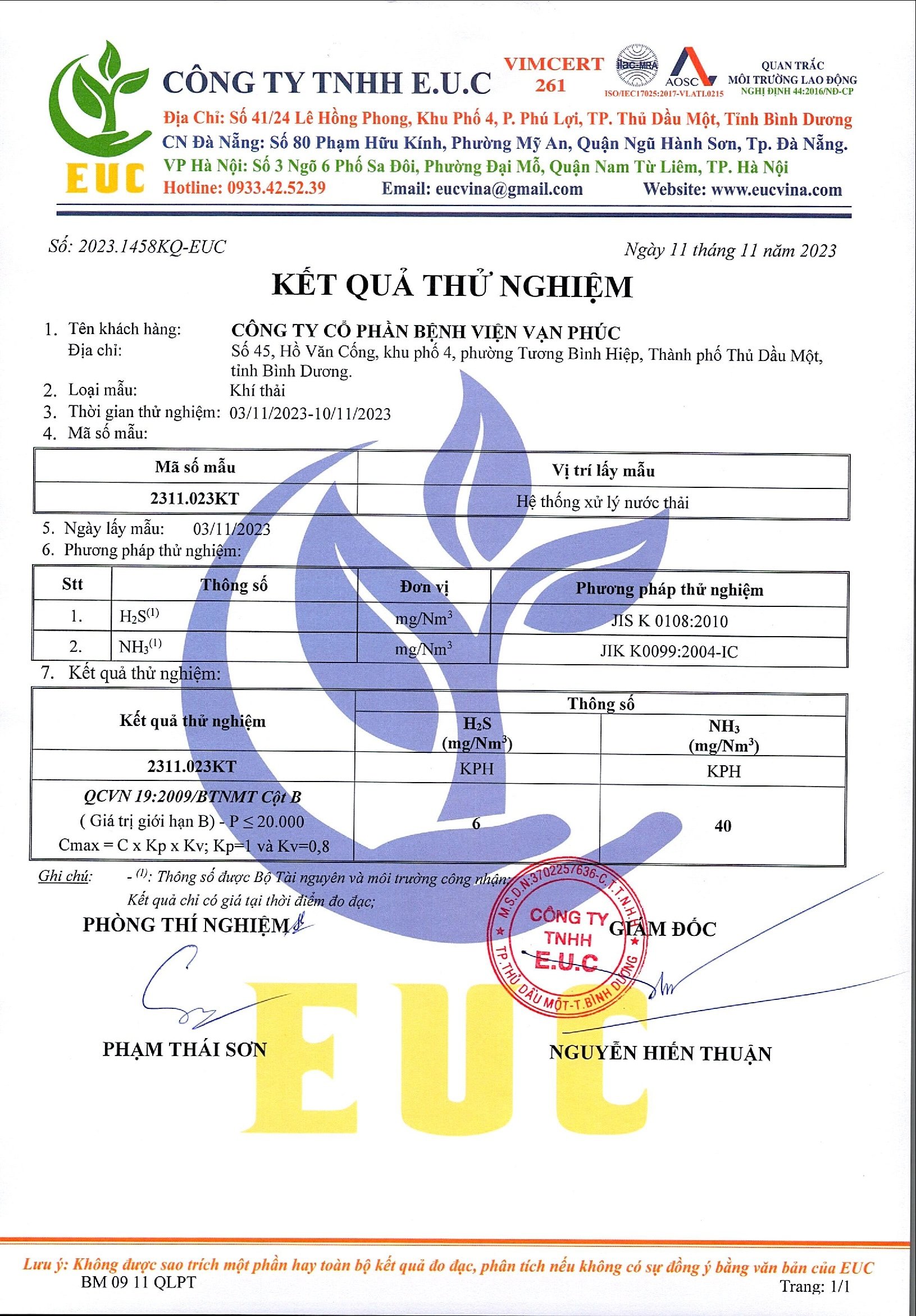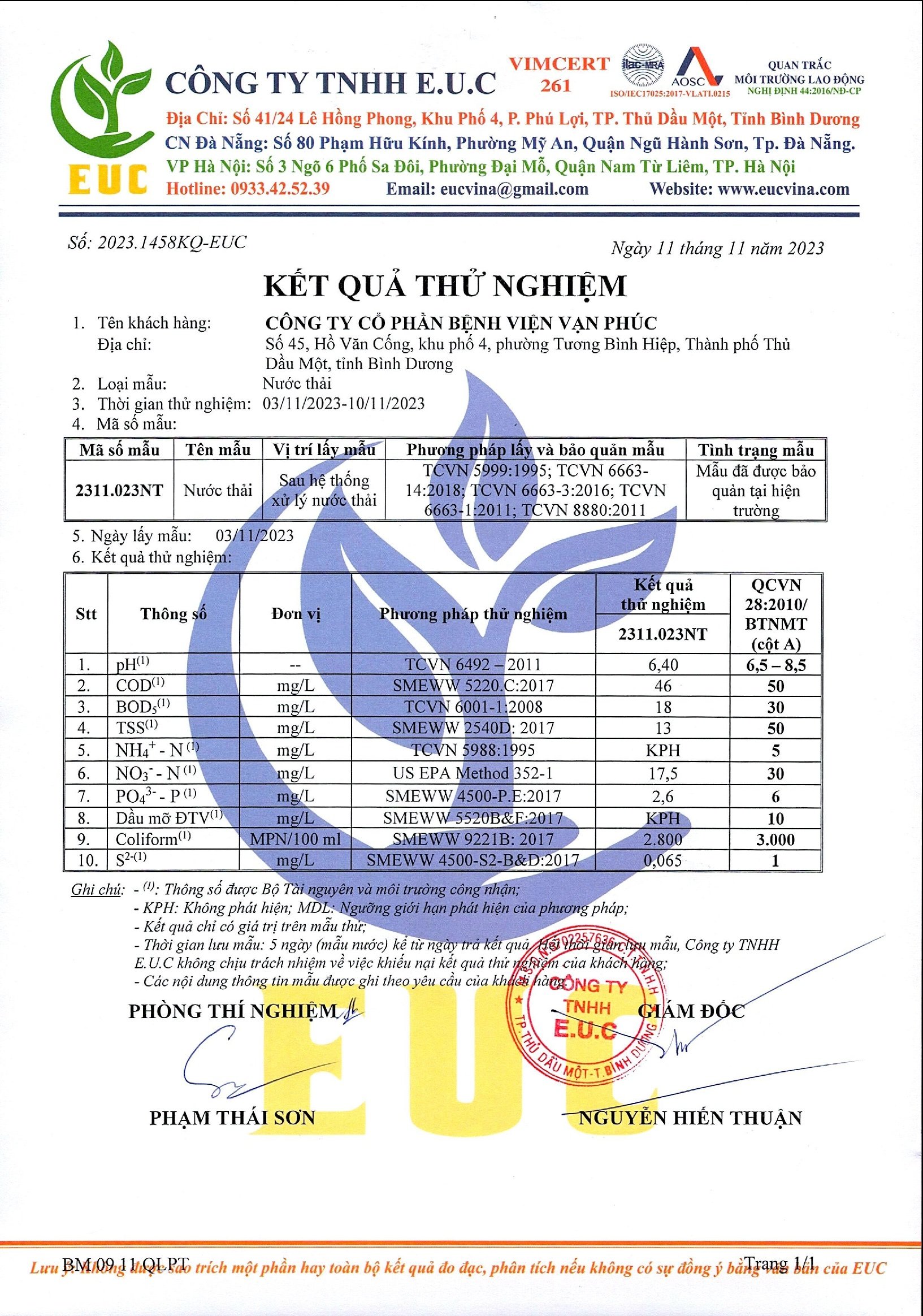Kết quả quan trắc học quý IV – 2023 Bệnh viện Hoàn Mỹ Bình Dương