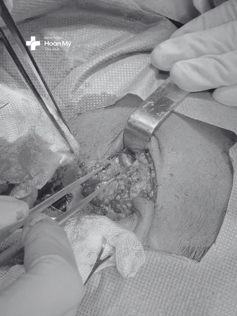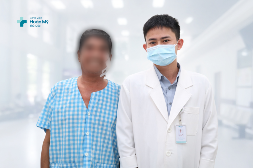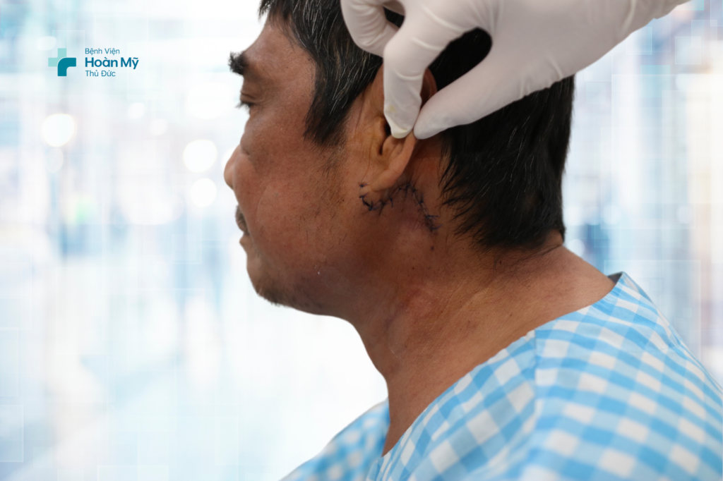 Sau khi thăm khám tại Bệnh viện đa khoa Quốc Tế Hoàn Mỹ Thủ Đức, các bác sĩ chẩn đoán người bệnh T. bị u tuyến nước bọt mang tai trái, chỉ định phẫu thuật cắt thuỳ nông tuyến nước bọt mang tai kèm u, đây là phương pháp điều trị triệt để bệnh, bảo tồn thần kinh mặt và ống tuyến nước bọt mang tai.